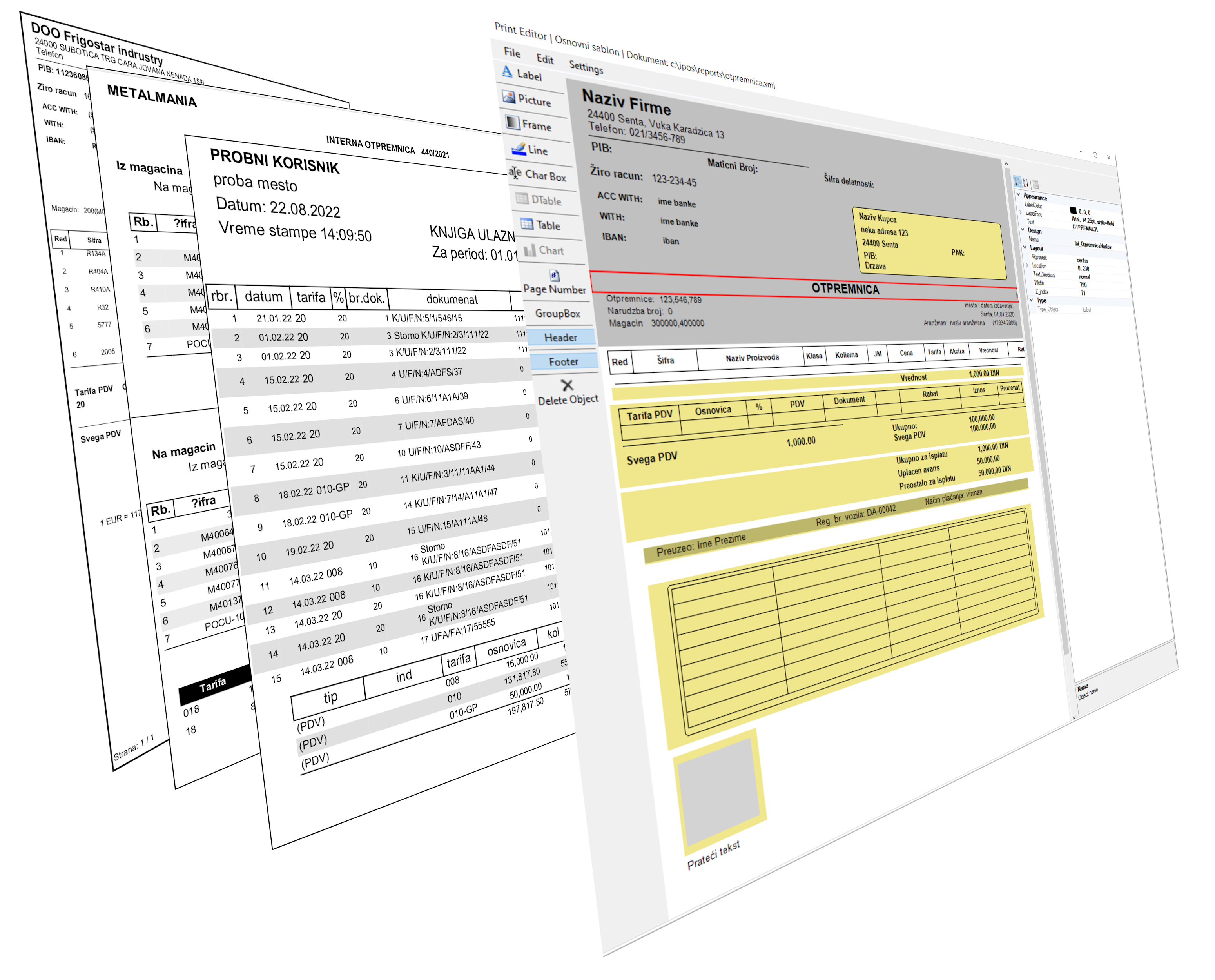 Svaki od štampanih izveštaja je moguće menjati i dodavati im elemente (logo, dodatni tekst) po želji